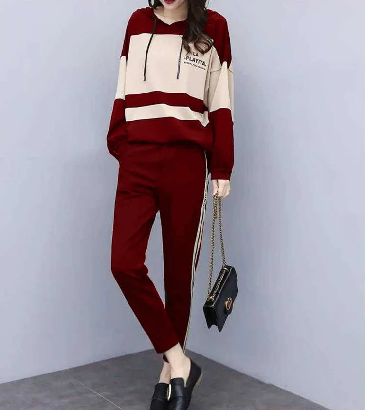 WANYUCL 2020 casual suit spring and autumn plus size hooded round neck top casual nine-point pants two-piece women